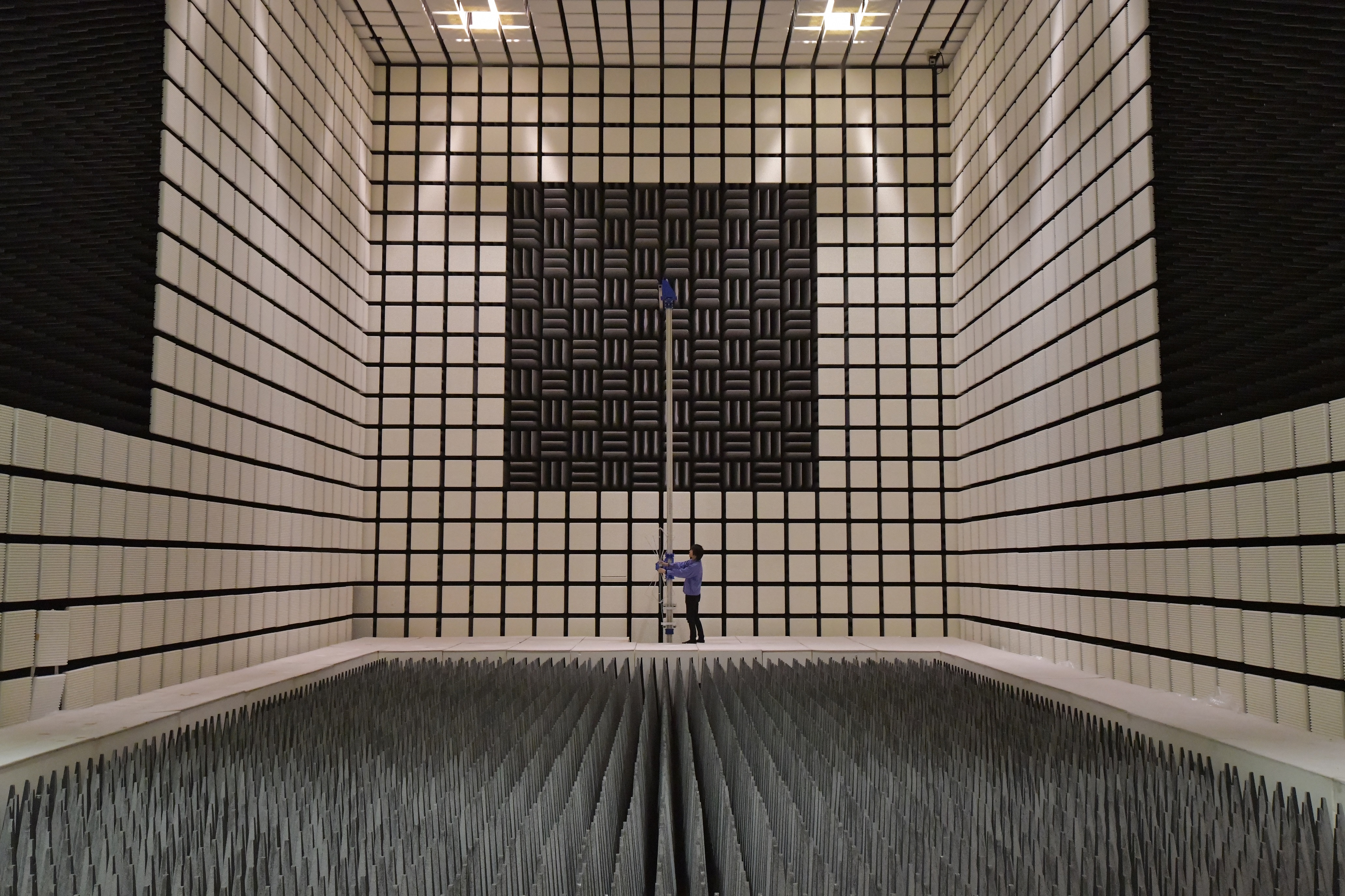埼玉県鴻巣市にある川里工場には国内最大級のアンテナ測定設備である「電波暗室」を有しています。